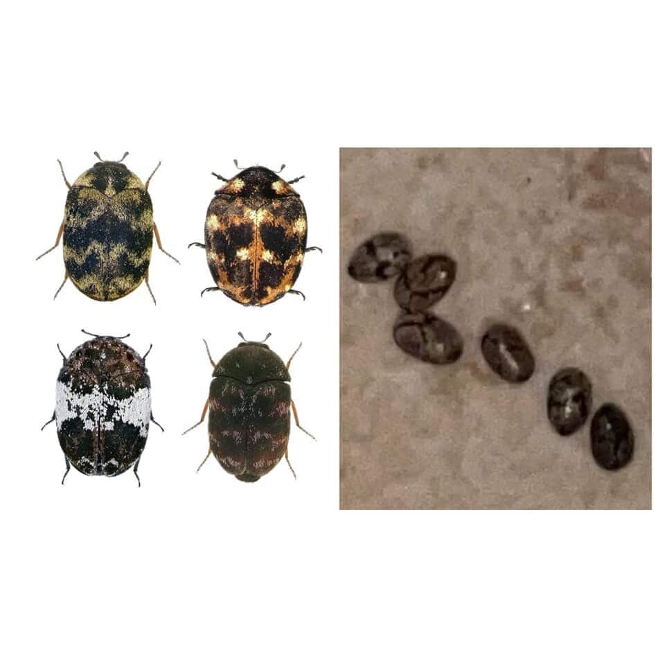 The spotted carpet beetles have an uncanny resemblance to chia seeds because of the spots and markings on their backs.